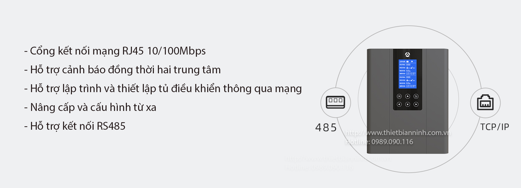 - Hỗ trợ 2 nhóm trung tâm nhận cảnh báo Ethernet độc lập.