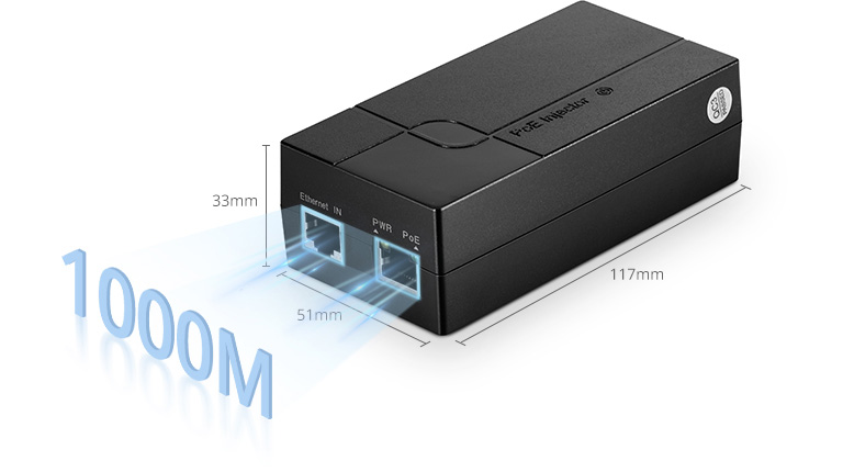 - Hỗ trợ cổng kết nối tốc độ 1Gagabit: thiết bị bao gồm 01 cổng kết nối LAN (in) và 01 cổng kết POE (out) tốc độ kết nối 10/100/1000Mbps giao diện RJ45 dễ dàng lắp đặt và sửa chữa