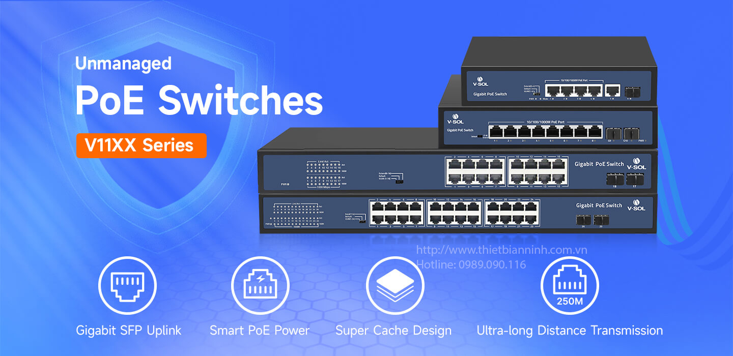 Switch V-SOL V1104-G-S-P 04 cổng POE Gigabit + 01 cổng uplink 1G + 01 SFP
