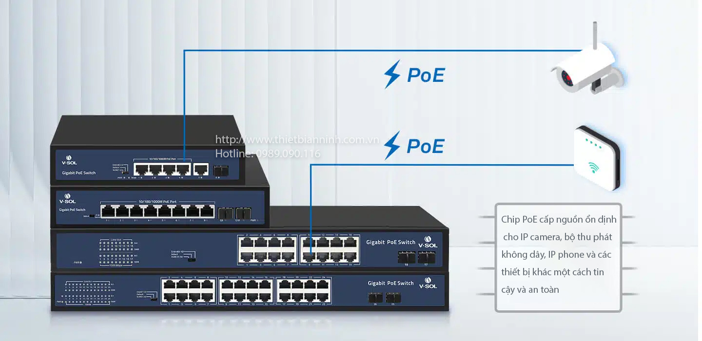 Được thiết kế chuyên dụng cho các ứng dụng mạng camera giám sát, với Smart PoE power